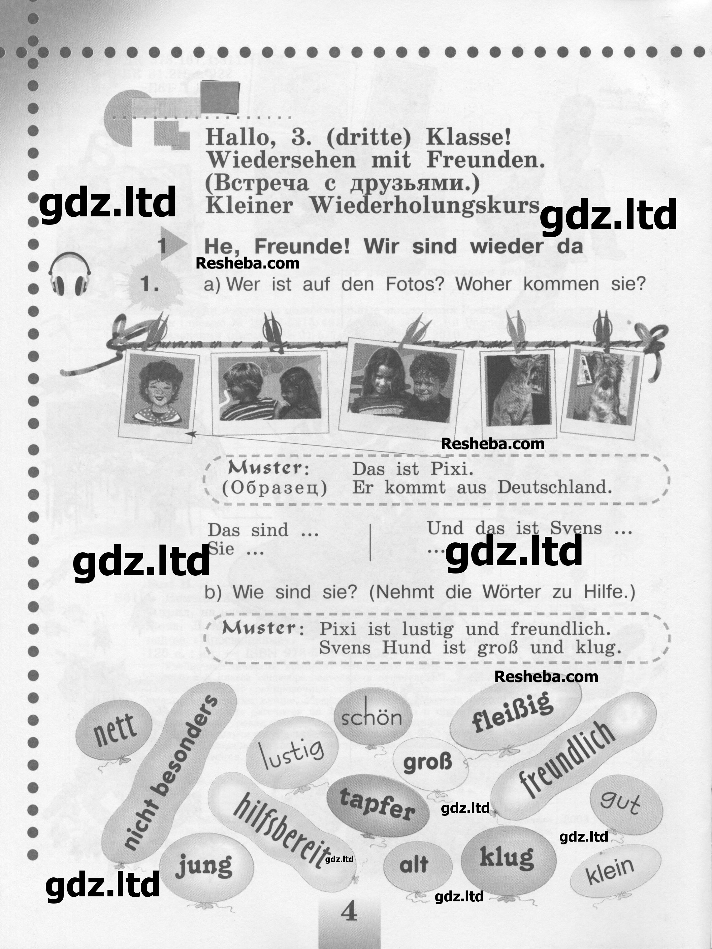 Структура пособия полностью идентична оригиналу, поэтому можно быстро и без проблемно найти нужное упражнение. А благодаря подробным решениям в ГДЗ по немецкому языку 3 класс Бим любое затруднение с выполнением д/з становится легко разрешимым. Авторы предоставили так же и перевод к текстам и заданиям, что облегчит понимание их сути.