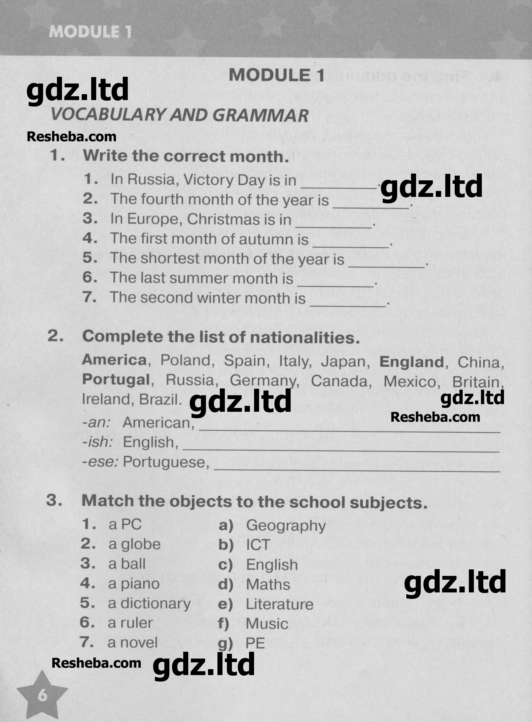 Сборник имеет восемьдесят девять страниц, на которых упражнения распределены по шести модулям. Так же в конце издания представлены тестовые работы, которые помогут понять насколько именно усвоен материал. ГДЗ по английскому языку 5 класс Комиссаров включает в себя полноценный перевод и доскональные ответы по всем номерам.