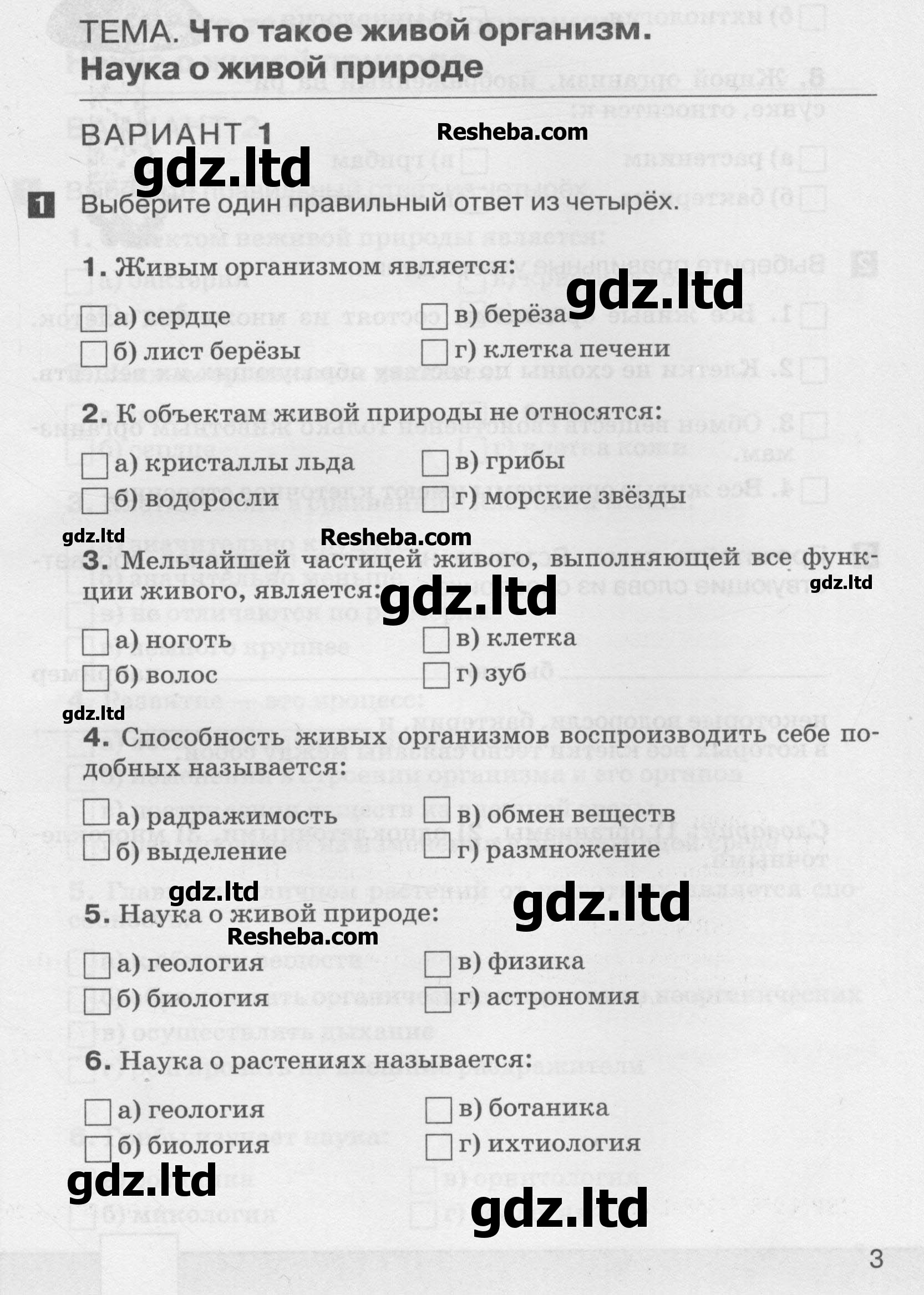 ГДЗ Биология 5 класс Сонин, Плешаков - Тесты «Дрофа»
