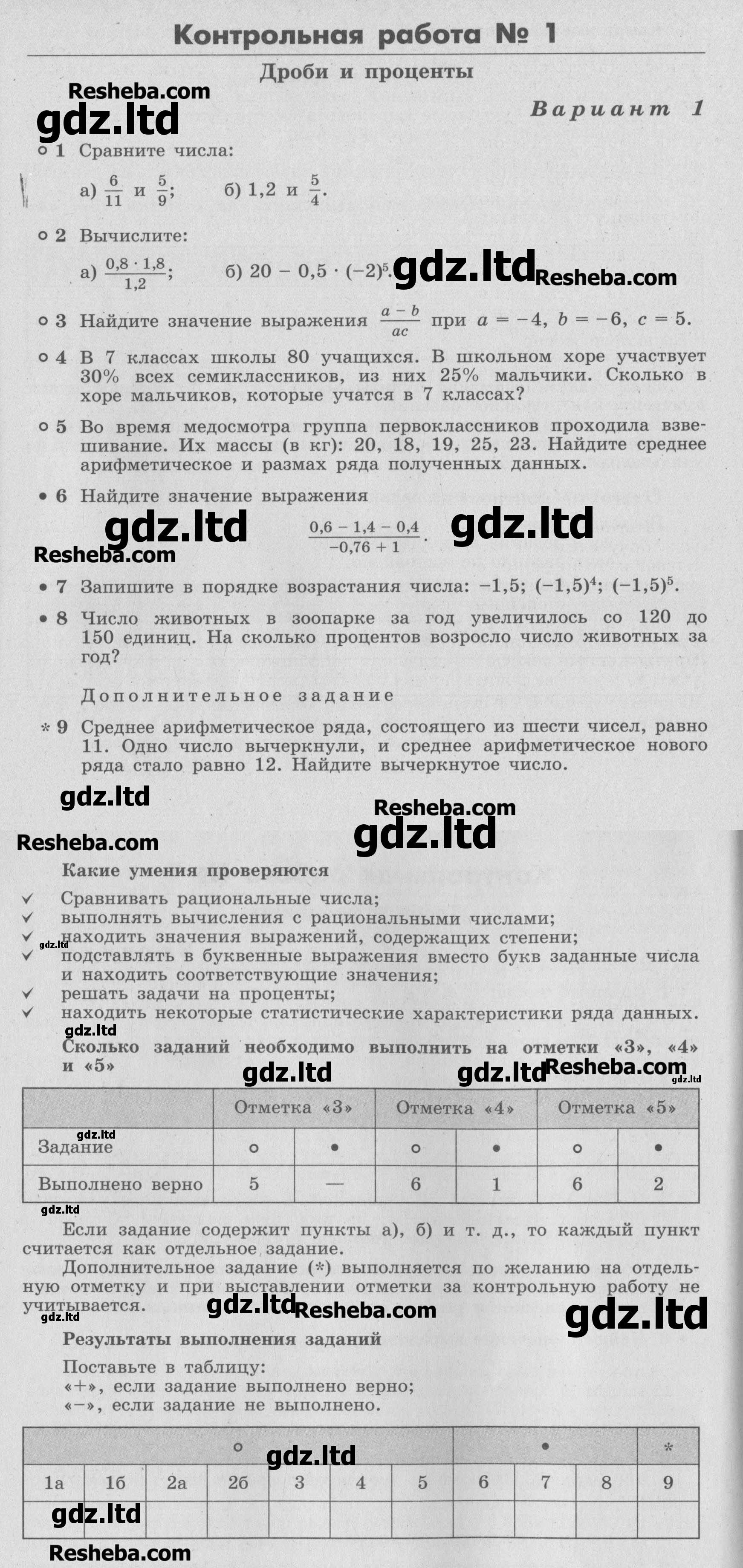 ГДЗ Алгебра 7 класс Кузнецова, Минаева, Рослова - Контрольные работы «Просвещение»